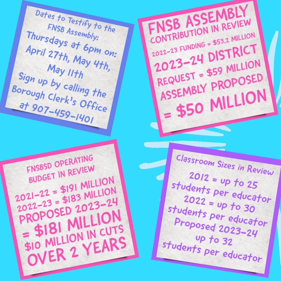 On Monday, I talked a little bit about at the Fairbanks North Star Borough (FNSB) Assembly proposing to cut the local contribution to our public schools.