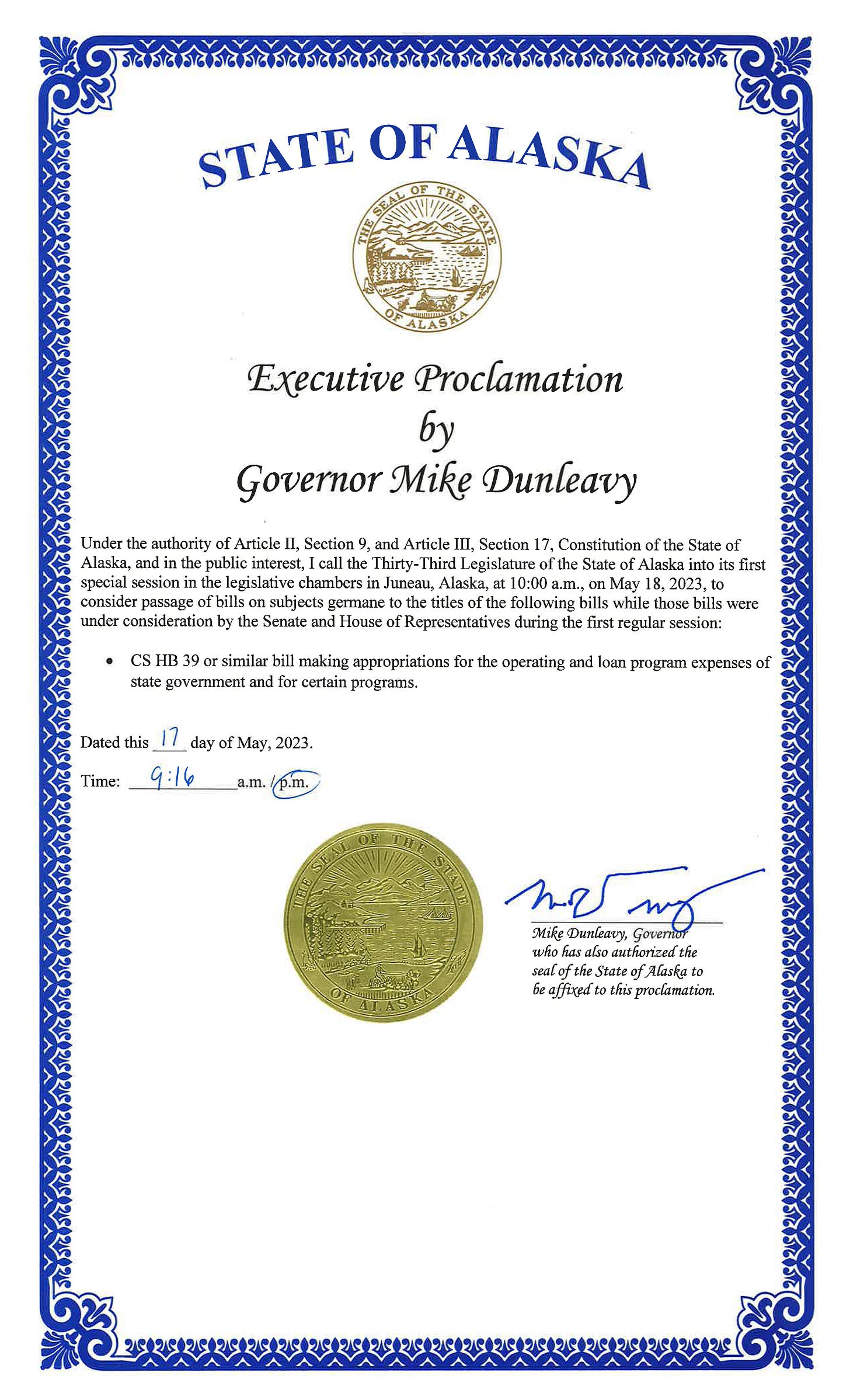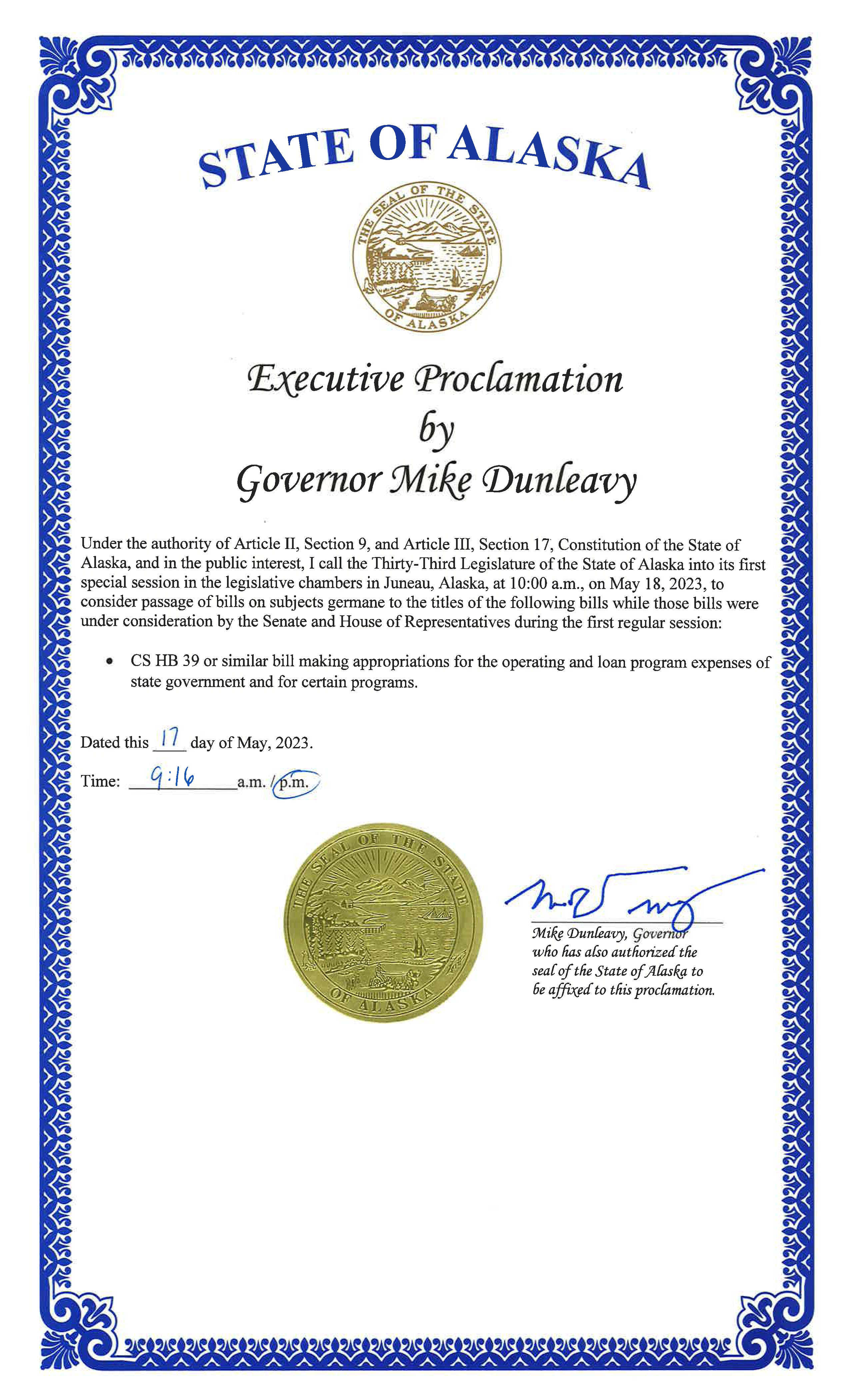 The House majority folded less than 24 hours after entering into the special session called by Governor Dunleavy immediately following the end of the regular session. That regular session ended due to a constitutional limit on the length of time the legislature can meet.